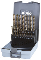 Der Satz enthält Spiralbohrer aus Hochleistungs-Schnellarbeitsstahl mit 5 % Kobaltanteil (HSSE‑Co 5). Durch die bronzierte Oberfläche zeichnet sich der Satz durch hohe Warmhärtebeständigkeit und verbesserte Standzeiten aus – speziell bei Bohrungen in rostfreiem, säurebeständigem und hitzebeständigem Stahl mit Festigkeiten bis ca. 1.100 N/mm².