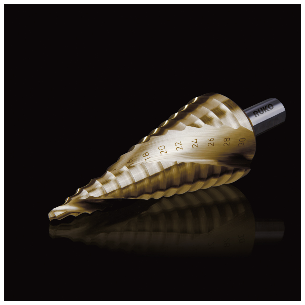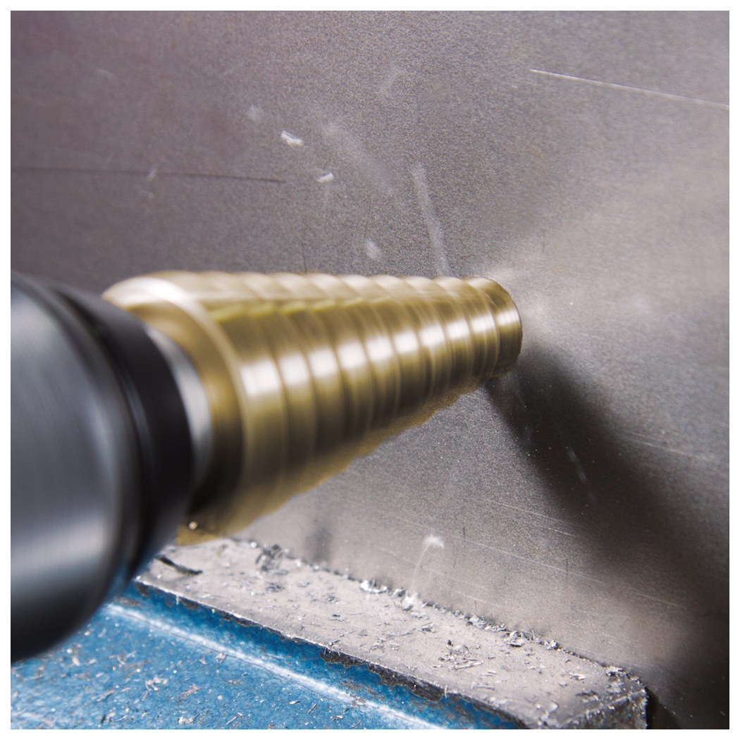 Ein hochpräziser Stufenbohrer zur Herstellung verschiedener Lochgrößen in einem Arbeitsgang – besonders geeignet für Metallbearbeitung und kraftvolle Werkstattumgebung.