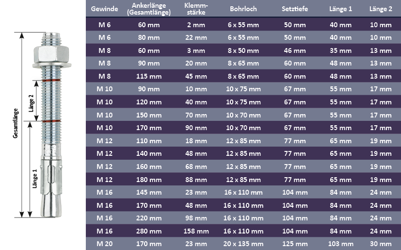 • Mit europäischer Zulassung Option 7 für ungerissenen Beton und abgehängte Decken nach DIN 18168