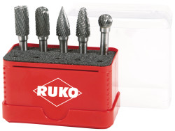 Der RUKO Hartmetall‑Frässtifte‑Satz 5‑teilig bietet gezielt abgestimmte Präzision für professionelle Metall- und Kunststoffbearbeitung. Die Kreuzverzahnung (CT4) sorgt im Vergleich zur Einfachverzahnung für eine deutlich höhere Spanleistung, was insbesondere bei schwer zerspanbaren Werkstoffen wie hochlegierten, rost‑, säure‑ und hitzebeständigen Stählen, Guss oder Kunststoffen zum Tragen kommt