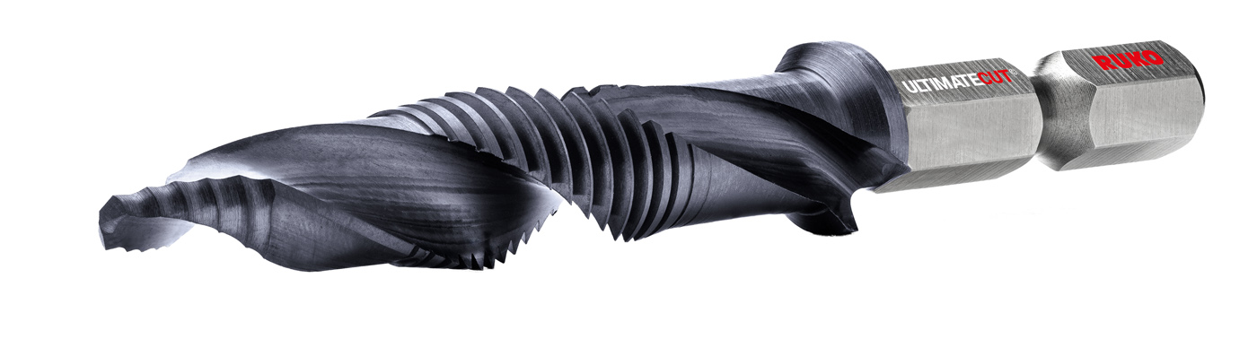 Der RUKO ULTIMATECUT Kombi-Maschinengewindebohrer-Bit Satz vereint Bohren, Gewindeschneiden und Entgraten in einem einzigen Werkzeug. Ideal für präzise und effiziente Arbeiten in verschiedenen Materialien.