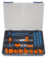 Set bestehend aus: 6 x Schlauchelemente á 138 mm 2 x NPT-Gewindeanschluss 3/8'' 2 x NPT-Gewindeanschluss 1/2'' 2 x Runddüse 6,0 mm 2 x Runddüse 9,0 mm 2 x Runddüse 12,0 mm 1 x Breitstrahldüse 32 mm 1 x Breitstrahldüse 63 mm 1 x 5-Lochdüse 3,2 Ø mm 1 x 7-Lochdüse 2,0 Ø mm 1 x Flachdüse 18 x 2,0 mm 1 x Flachdüse 18 x 3,2 mm 1 x Gelenkduschdüse 20 x 2,0 Ø 1 x Y-Verbindung 1 x Absperrhahn mit Segmentanschluss 1 x Rückschlagventil 1 x Montagezange