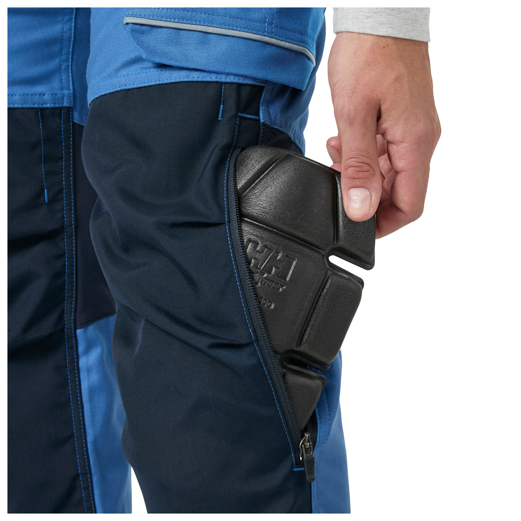 Dank elastischer Taille, flexibler Hosenträger und integriertem Zwickel im Schritt passt sich die Arbeitshose jeder Bewegung an. Besonders beanspruchte Bereiche sind mit Cordura® verstärkt. Die von außen zugänglichen Knieschonertaschen mit Höhenverstellung sowie das HH Connect™-System zur Befestigung modularer Werkzeugtaschen machen diese Latzhose zu einer durchdachten Lösung für den professionellen Arbeitsalltag.