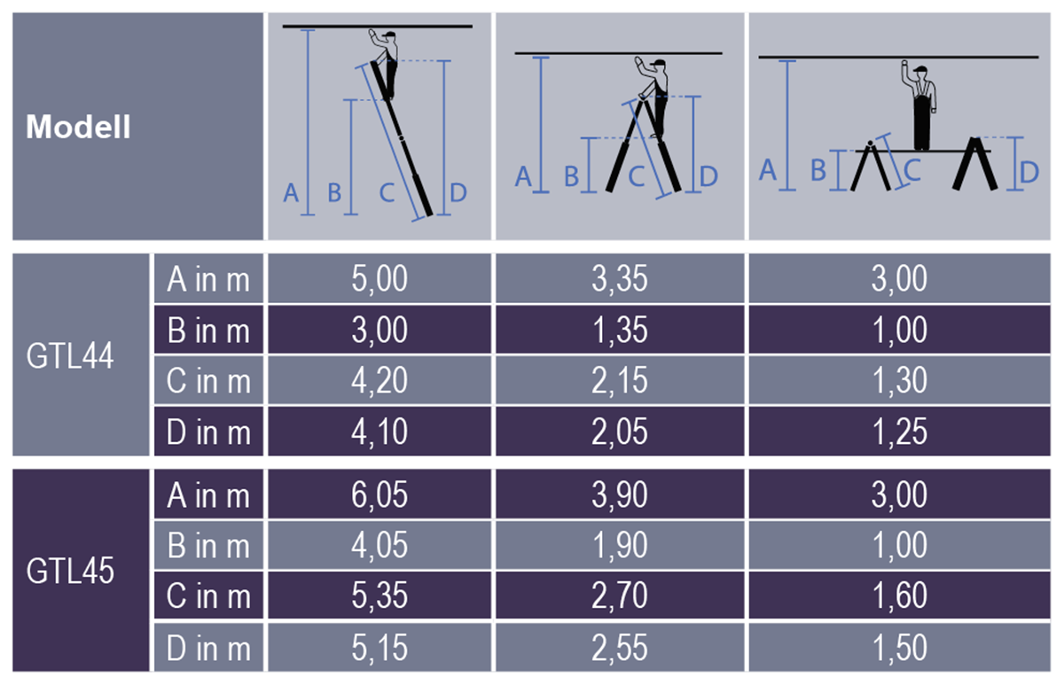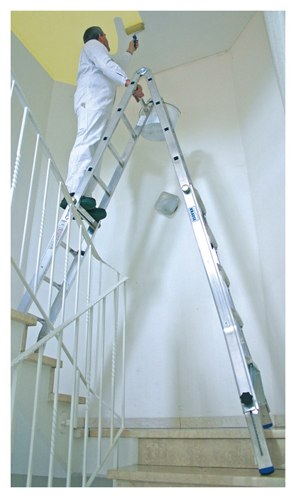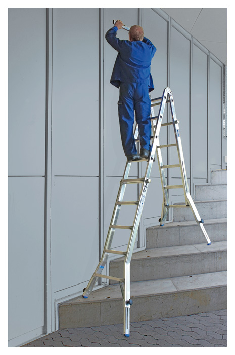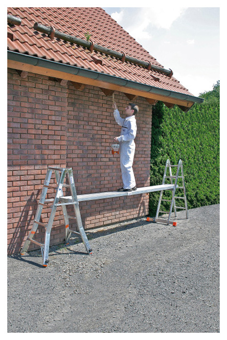• Einsetzbar als Anlege-, Doppel-Stehleiter und Arbeitsbühne