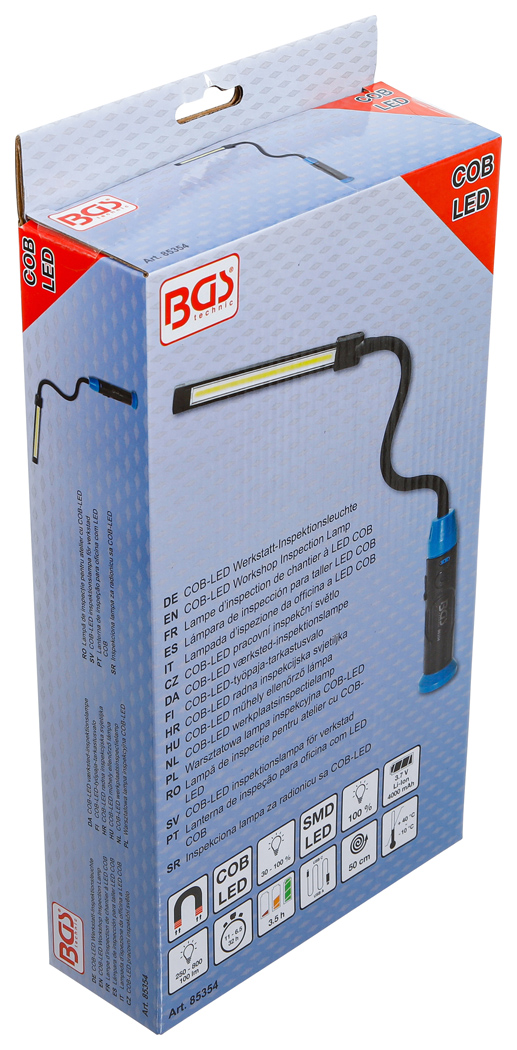 Diese vielseitige Inspektionsleuchte eignet sich ideal für Werkstatt, Industrie und Handwerk. Dank des flexiblen Schwanenhalses lässt sich der Lampenkopf präzise ausrichten – auch an schwer zugänglichen Stellen.