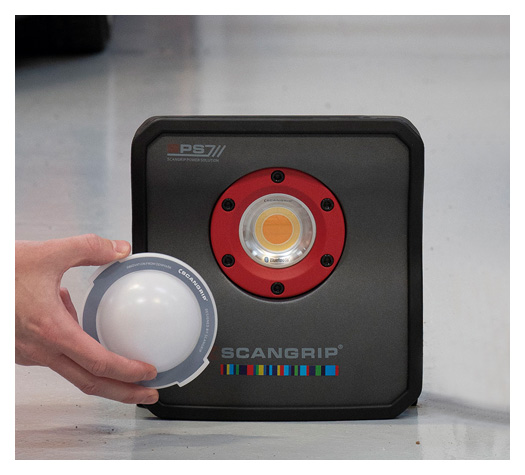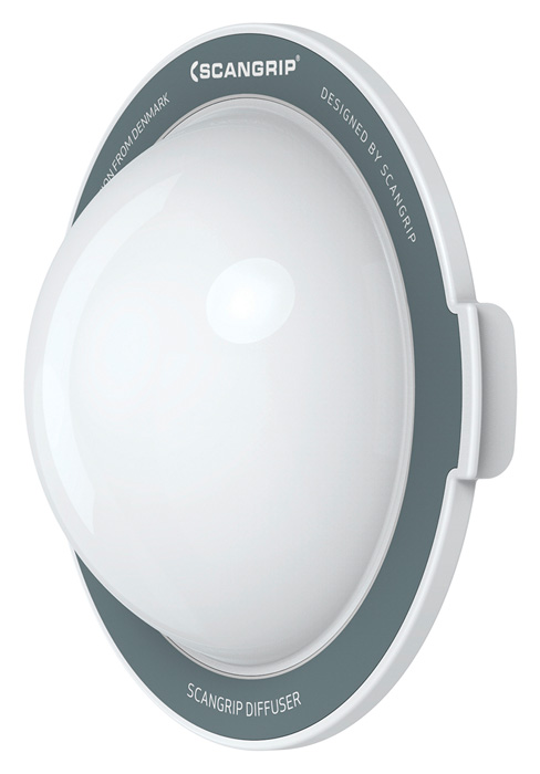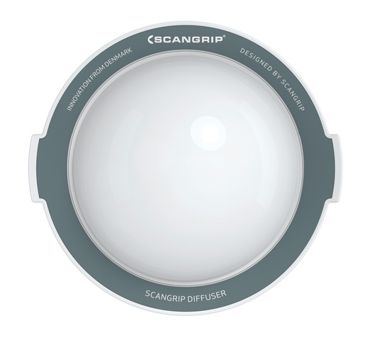 • Der Diffusor ist besonders glatt und leicht. Mit den starken, eingebauten Magneten wird der Diffusor leicht und sicher an Ihrer SCANGRIP Arbeitsleuchte befestigt.