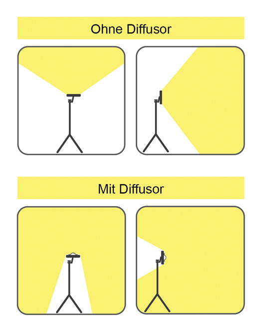 • Der Diffusor gestaltet ein gestreutes und weiches Licht, das den ganzen Arbeitsbereich ausleuchtet und gleichzeitig werden starke Kontraste zwischen Licht und Schatten vermieden. Mit diesem neuen Zubehörteil können die Lichtverhältnisse noch besser auf die jeweilige Arbeitsaufgabe abgestimmt werden.