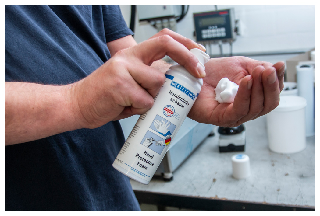 Der WEICON Handschutzschaum, dermatologisch getestet, bietet starken, aber atmungsaktiven Schutz für Ihre Haut – ideal bei Arbeiten mit Chemikalien, Klebstoffen oder in schmutzanfälliger Umgebung. Er wirkt wie ein „unsichtbarer Handschuh“ und unterstützt die natürliche Barrierefunktion Ihrer Haut.