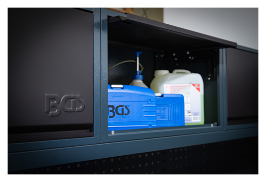 - 1 Schubladen-Unterschrank, mit 7 leichtgängig, kugelgelagerten Schubladen bis 25 kg belastbar (je Schublade)