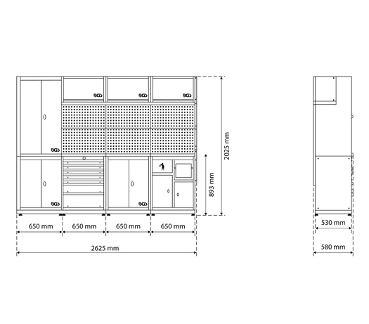 - Lochwandaufbau zur individuellen und übersichtlichen Lagerung von Werkzeugen