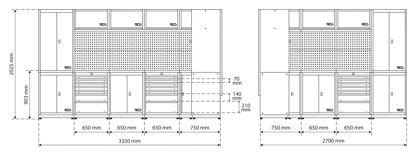 - Alle Schränke mit höhenverstellbaren Stellfüßen