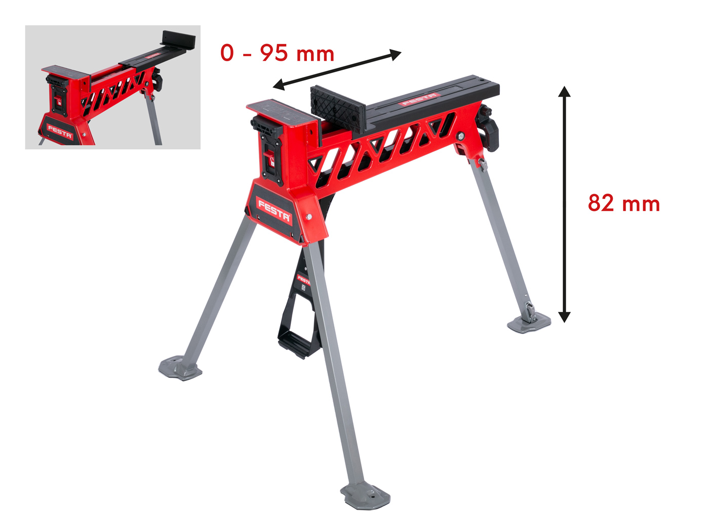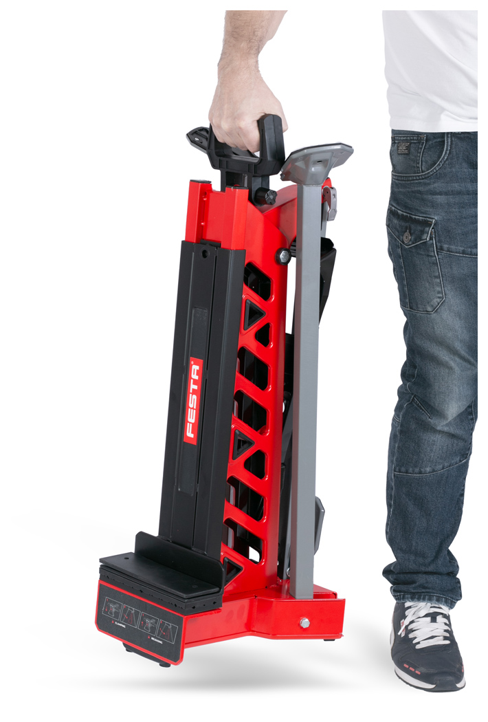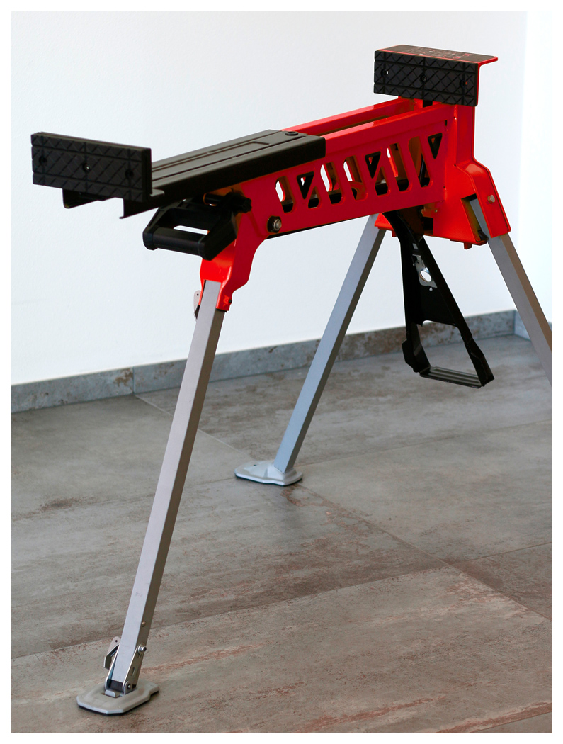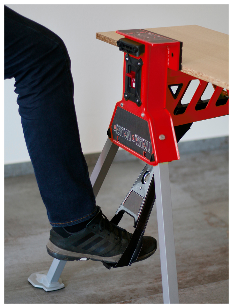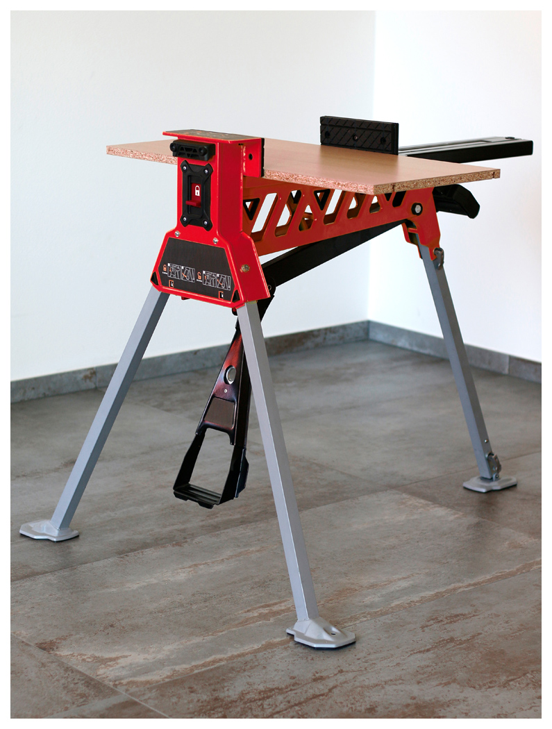Die großzügige Spannweite sowie die hohe Spannkraft sorgen für sicheren Halt auch bei größeren Werkstücken. Dank der intuitiven Faltmechanik und des stabilen Griffs lässt sich der Schraubstock-Bock einfach transportieren, umstellen und platzsparend lagern.