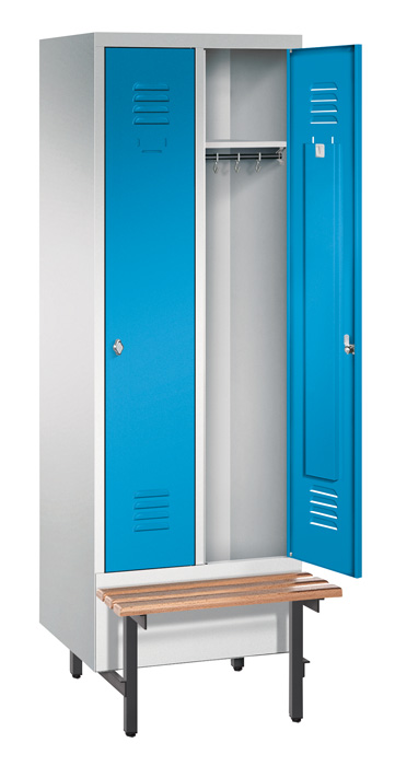 Kleiderspind mit Sitzbank und Metallfüßen, Stahlblech