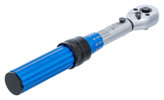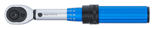 • optimal gestalteter, geriffelter Stahlhandgriff für leichtes Einstellen des gewünschten Drehmomentwertes, sowie einen sicheren Halt des Werkzeugs