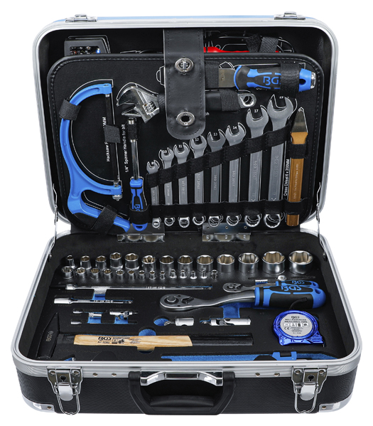 - Steckschlüssel-Einsätze, Umschaltknarren, VDE-Zangen, VDE-Schraubendreher und Maul-Ringschlüssel gefertigt aus Chrom-Vanadium Stahl