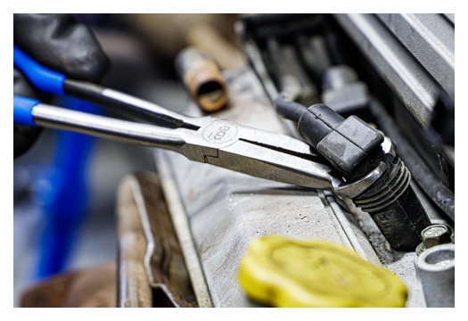 • Zündkerzen-Stecker-Zangen mit Ringspitze, zum beschädigungsfreien Abziehen und Aufstecken von Zündkerzensteckern, auch am betriebswarmen Motor