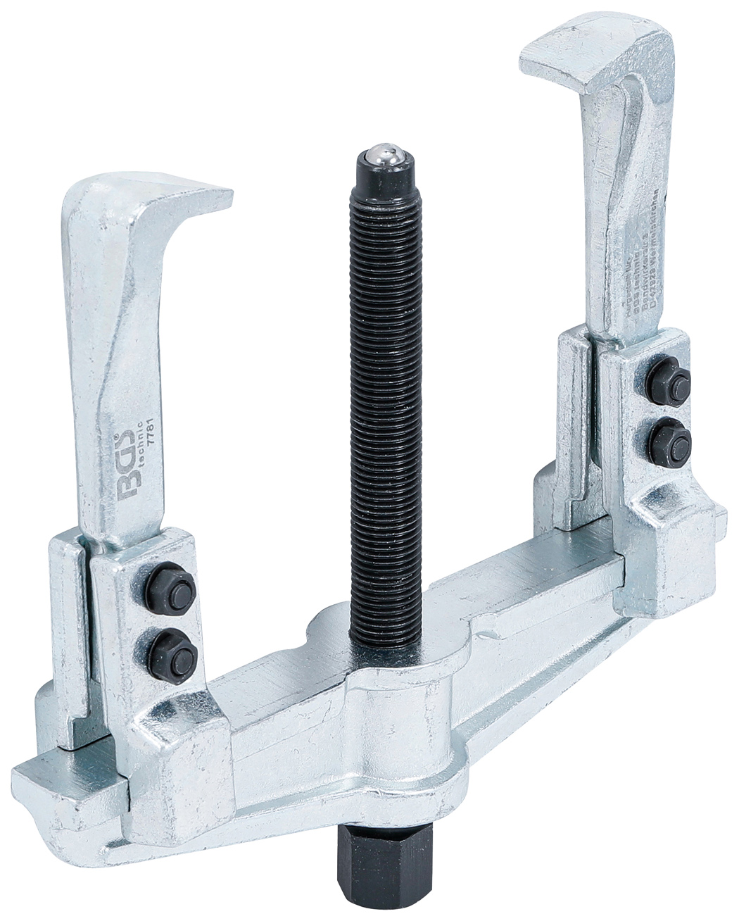 Ausgestattet mit Standardhaken bleiben die Abzughaken in jeder Position parallel. Dies sorgt für eine gleichmäßige Kraftverteilung und einen sicheren Sitz am Werkstück. Durch einfaches Umstecken der Haken ist der Abzieher flexibel für den Innenabzug und Außenabzug einsetzbar.