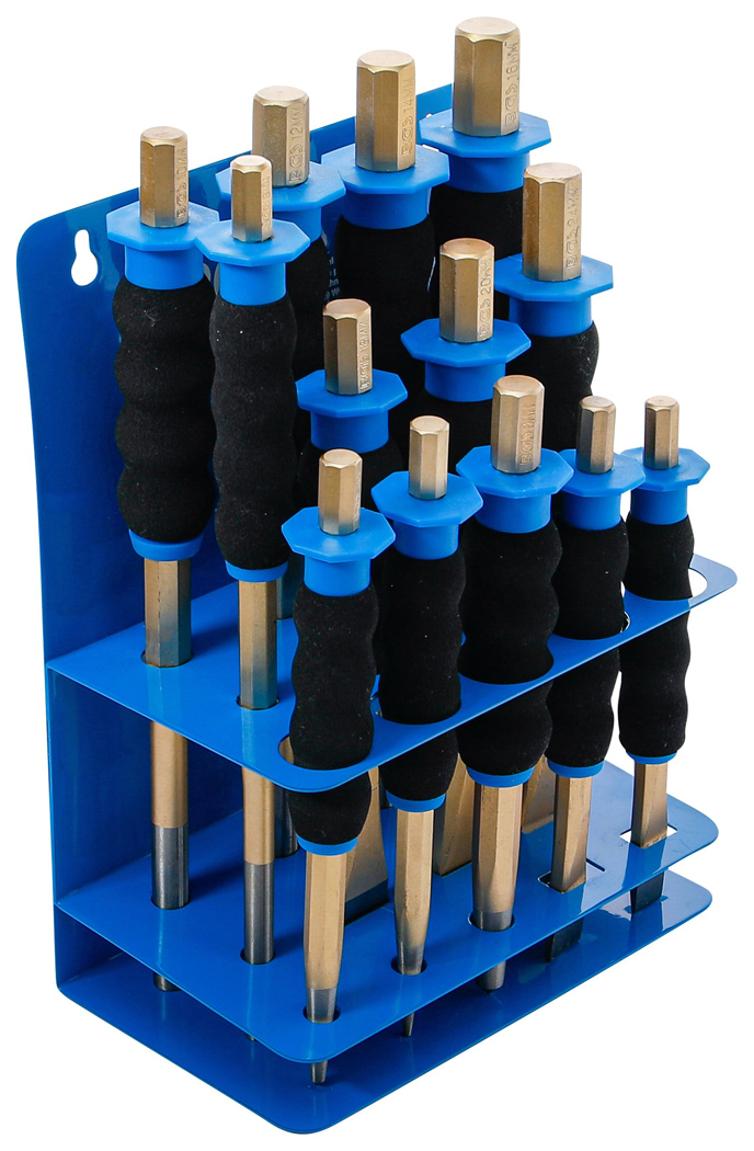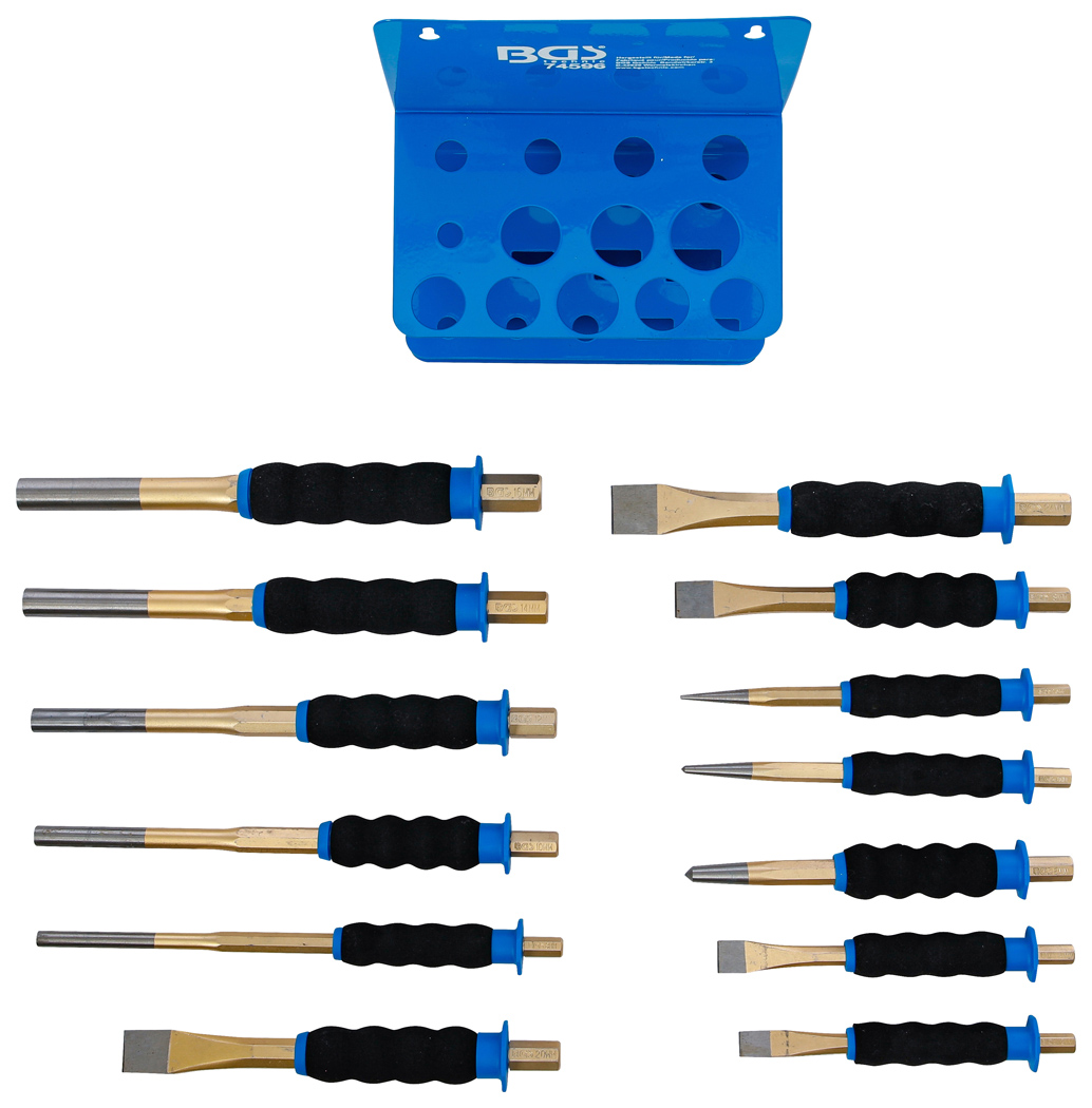 Splintentreiber-/Körner-/Flachmeißel-Satz mit Handschutz – 13-teilig