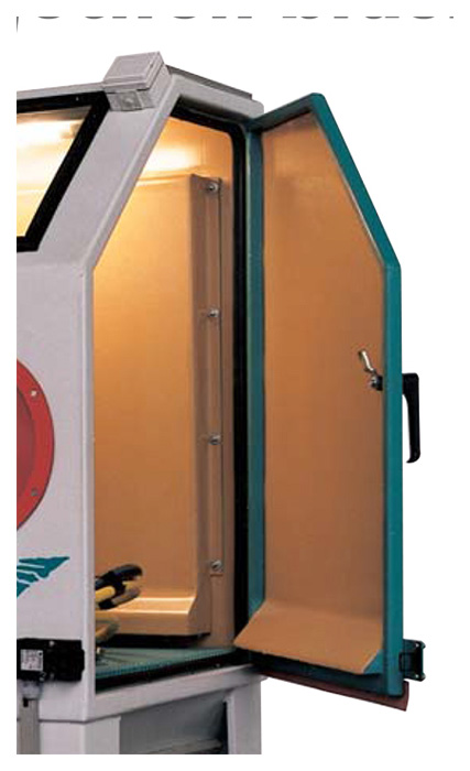 • Dadurch wird verhindert, dass das Strahlmittel an der Kabinenwand nutzlos zerschlägt. (Strahlmittelersparnis bis zu 50%)