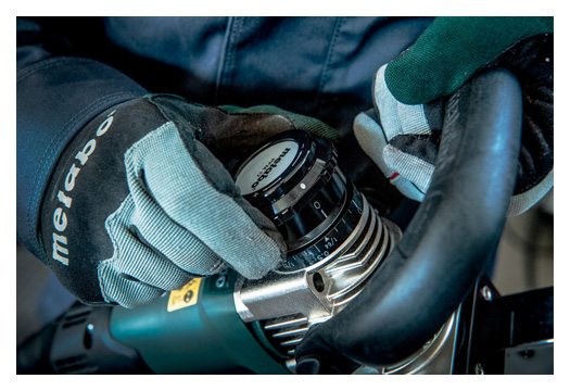 - Vario-Tacho-Constamatic (VTC)-Vollwellenelektronik mit Stellrad – zum Arbeiten mit materialgerechten Drehzahlen, die unter Last konstant bleiben