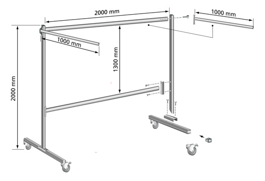 • Fahrbar, 4 Räder Ø 50 mm, 2 Räder mit Bremse