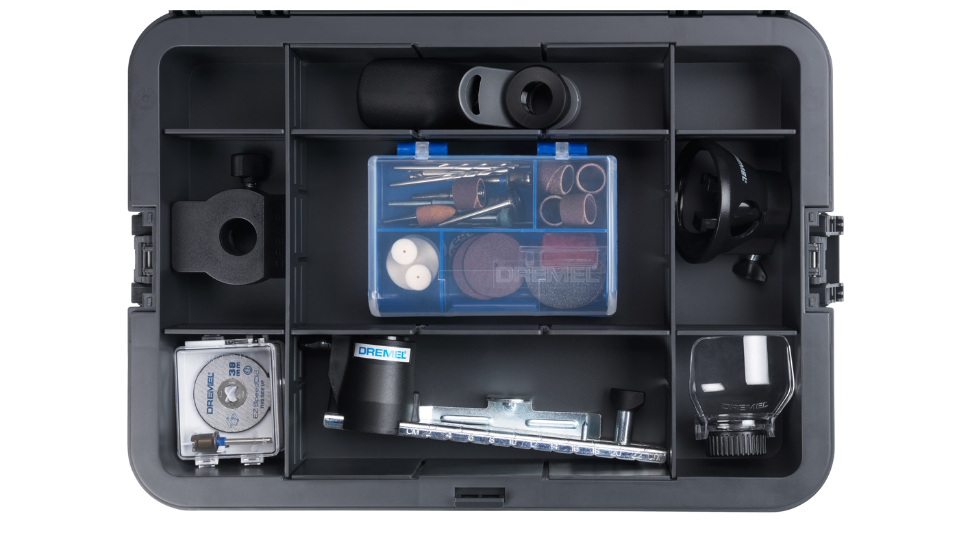 • Modulares Dremel Box Aufbewahrungssystem mit verstellbaren Teilern: für eine übersichtliche und flexible Aufbewahrung von Werkzeug, Zubehör und Aufsätzen – ideal für Werkstatt, Servicefahrzeug oder Baustelle.
