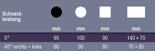 | Sägeblatt-Drehzahl | 40 / 80 U/min. |