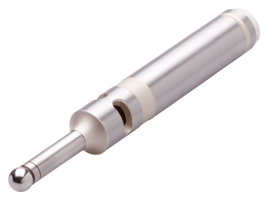Bei Kontakt der in den Achsen X und Y federnden Tastkugel mit dem elektrisch leitfähigen Werkstück wird der Stromkreis geschlossen und die eingebaute LED leutchtet auf. Somit ist die Werkstückkante bei Aufleuchten der LED mit einem Abstand von 5 mm erreicht.